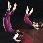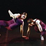 “Next we venture into a bawdy physical comedy routine with the acrobatic and witty Cheaper. Sperling and Ashley Sowell, clad in Ferranti’s bold pink and purple striped gymnastic tunics, perform a series of rather daring physical feats. They also manage to tie themselves and each other into knots — and these are not the kind of knots into which Balanchine wished to tie his leggy dancers. Sperling is highly experimental here, and tests the limits of the body, bending a leg up as high as it will go, cranking limbs every which way. Quentin Chiappetta’s music provides hilarious sound effects for the physical antics — a creaky door, popping, whistling, sirens, plates crashing. Sperling and Sowell also one-up each other. When Sowell performs her “strong-man,” or should I say, “strong-woman,” routine — holding her body weight up on her arms, curving her legs up and over her body so that they touch the top of her head — Sperling performs a bit of pointe shoe toe tapping. To say Sowell is strong is an understatement. The piece is witty and fun and rounds out Sperling’s movement style.”
