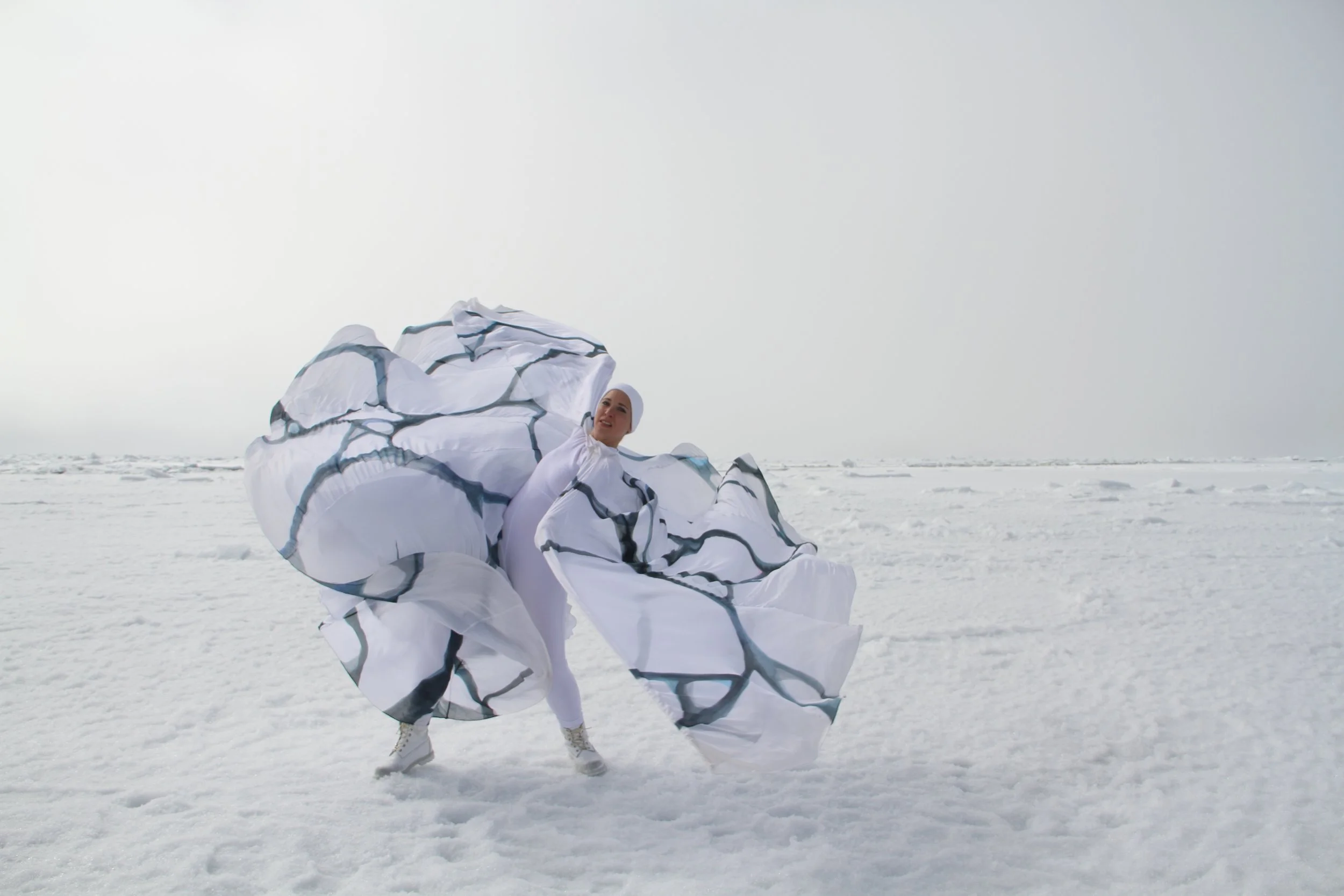 Jody Sperling had a unique opportunity to participate in a polar science mission to the Chukchi Sea as the first-ever choreographer-in-residence aboard the US Coast Guard Cutter Healy icebreaker. She was invited by Woods Hole oceanographer Dr. Robert Pickart as part of an outreach team on climate science communication. During the journey, she danced on the ice cap at a dozen ice deployments. The footage from these on site performances was edited into the short film Ice Floe (honored by the Creative Climate Awards) where Sperling embodies a timelapse of ice morphology. Sperling’s work Ice Cycle was inspired by this expedition and translates the experience to the stage.